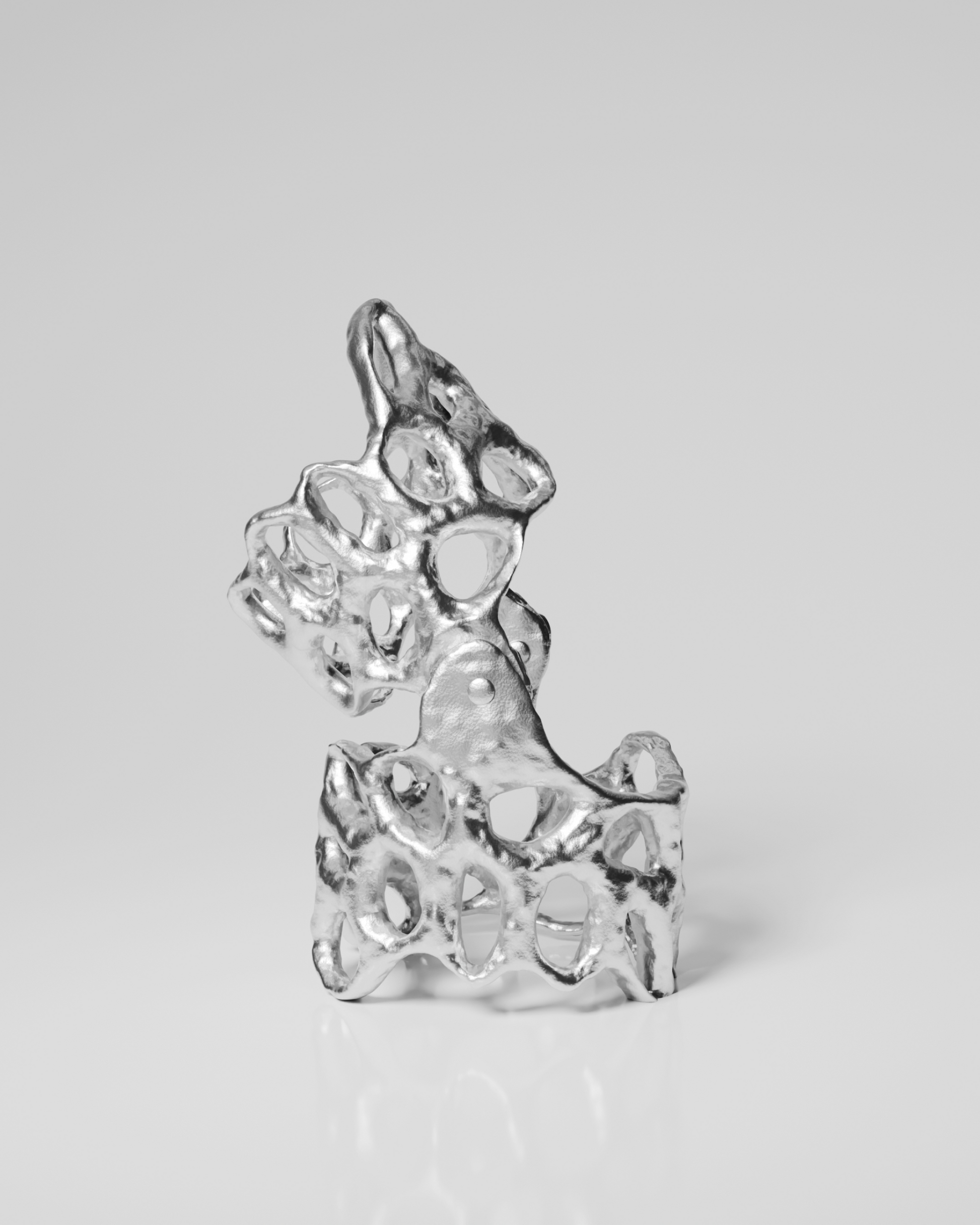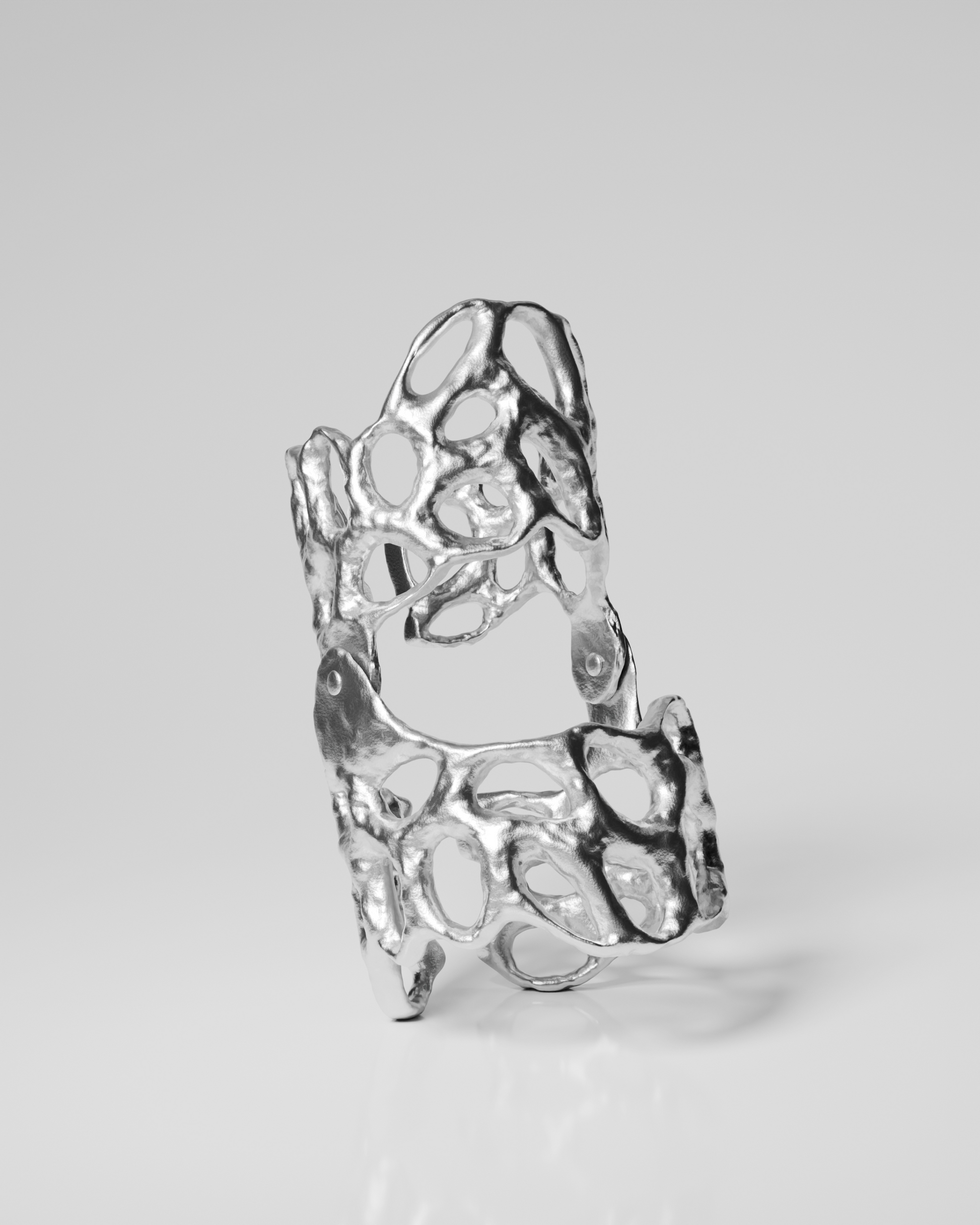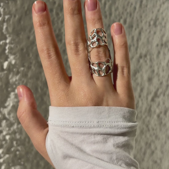 Created using advanced 3D sculpting techniques, this sterling silver ring features a flexible mechanism that lets your finger bend with ease. It’s the perfect choice for anyone looking to make a unique statement.